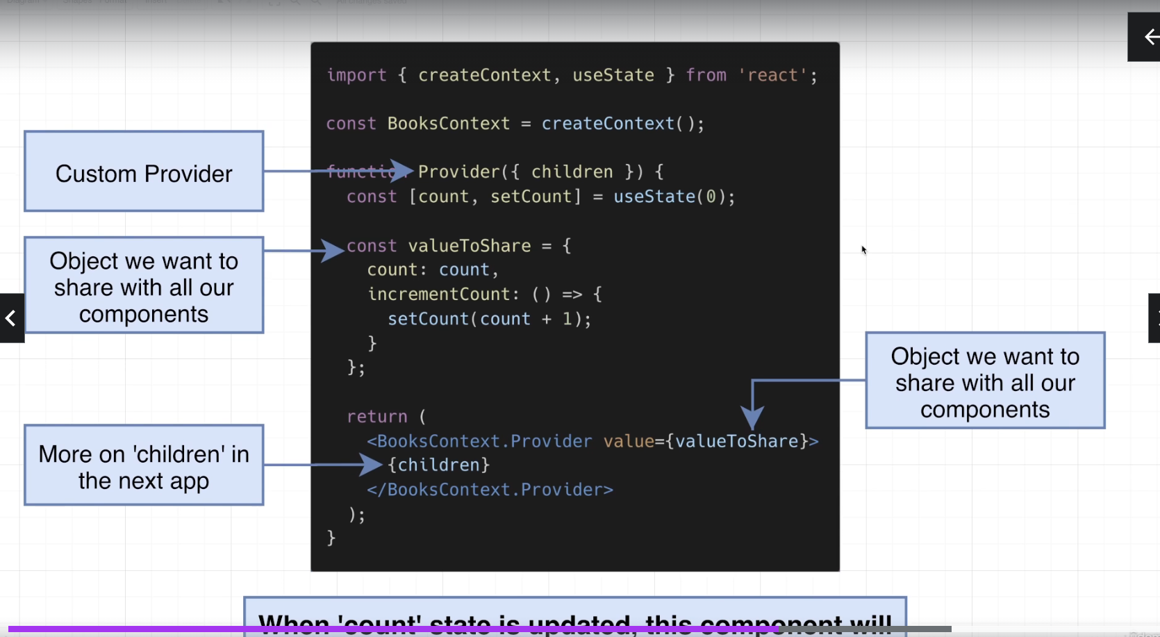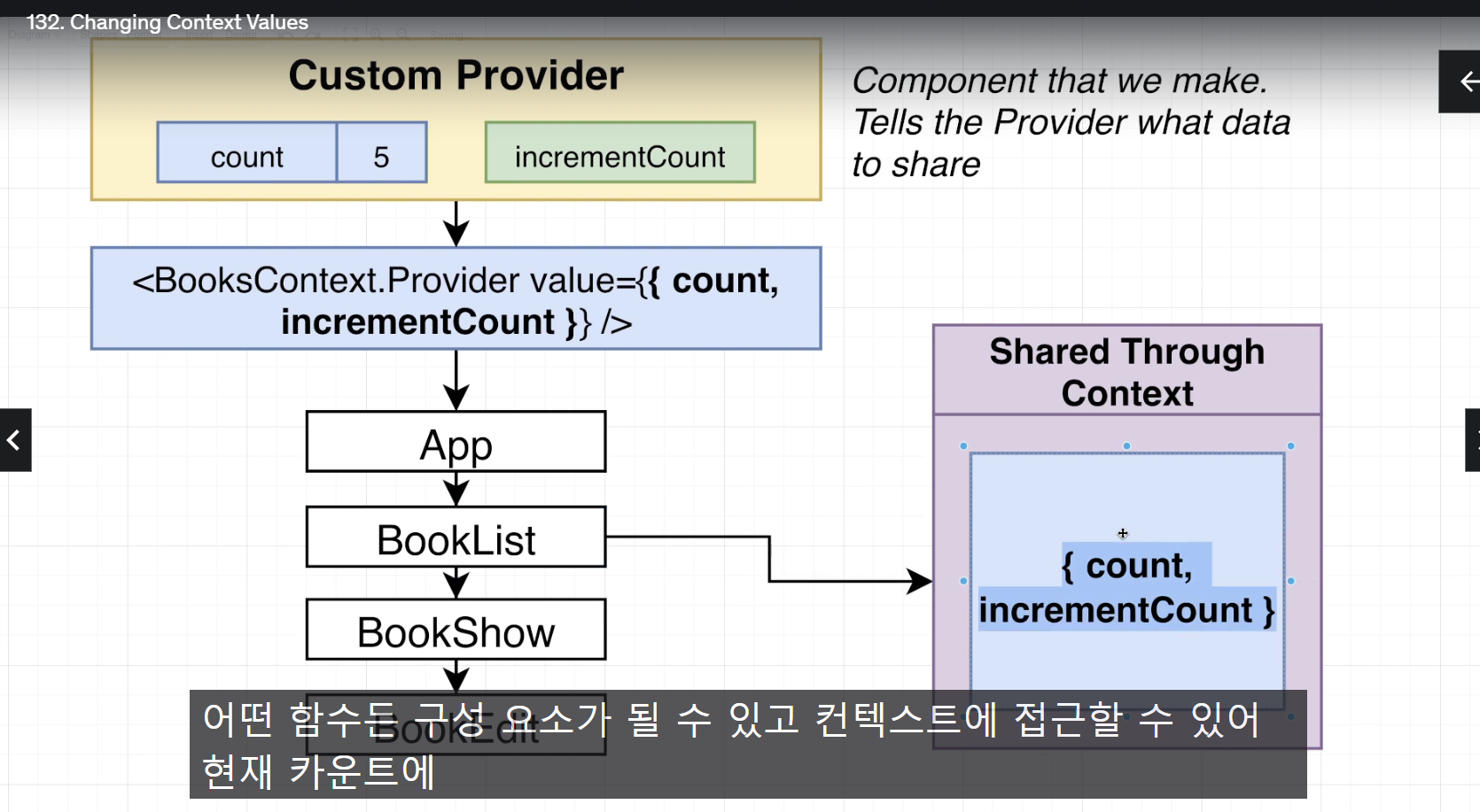 custom context를 생성하고 여기에 object로 변수와 incrementCount라는 함수를 전달하고