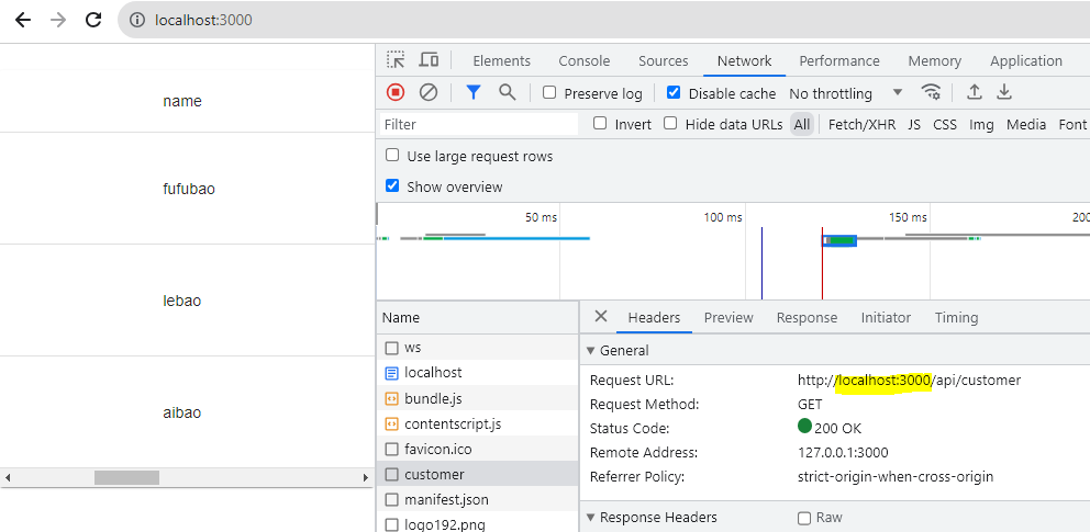 그럼 브라우저에서 http://localhost:3001/api/customer를 요청하면